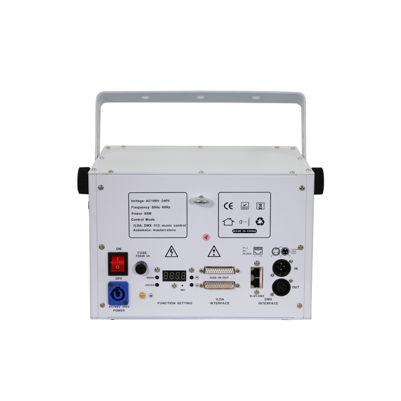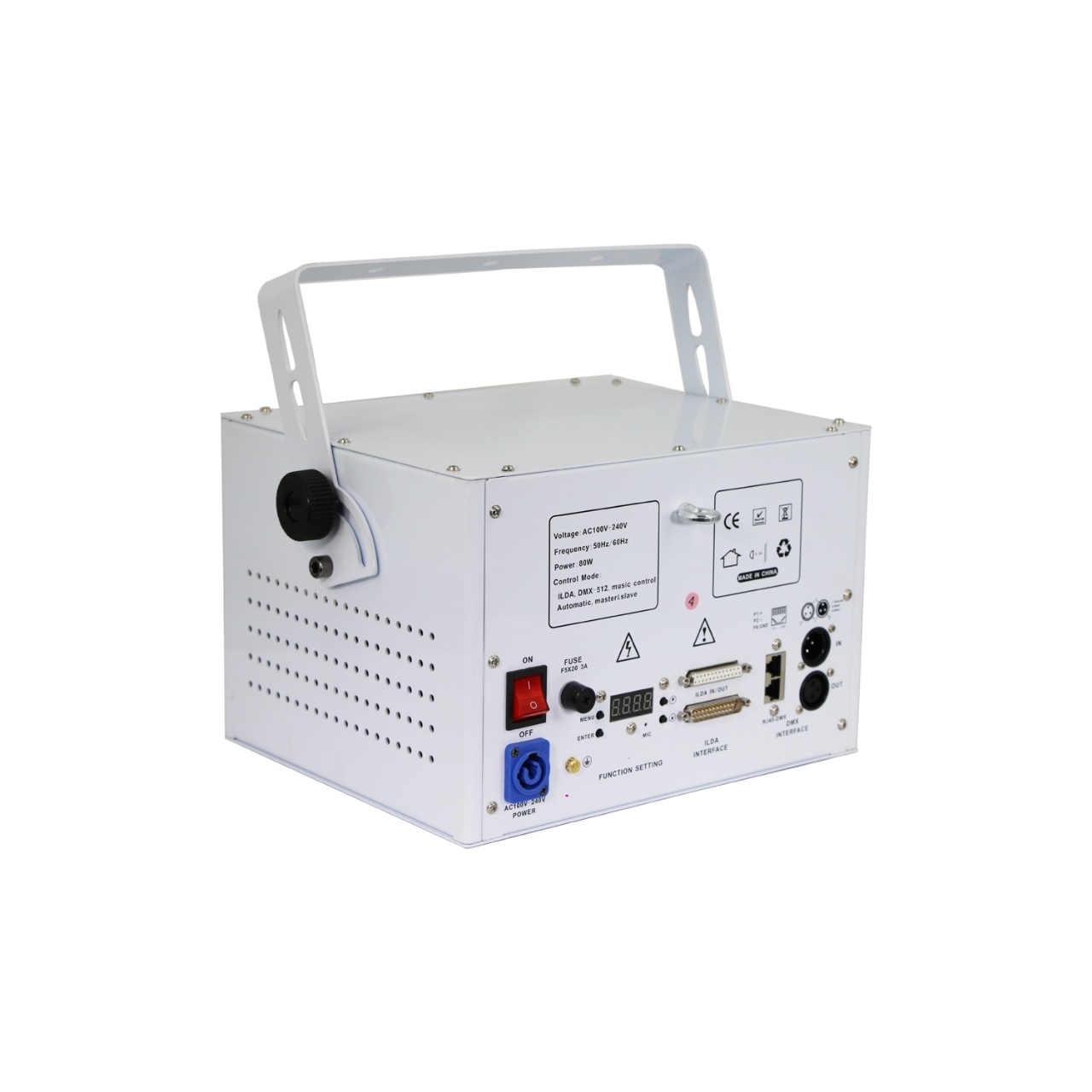 Interfaz de control: control DXM512 internacional, compatible con el software láser American Pangolin y los controladores Tiger, Pearl, MA, etc. Función de seguridad: Protección de un solo haz, sin necesidad de apagar la luz, etc.