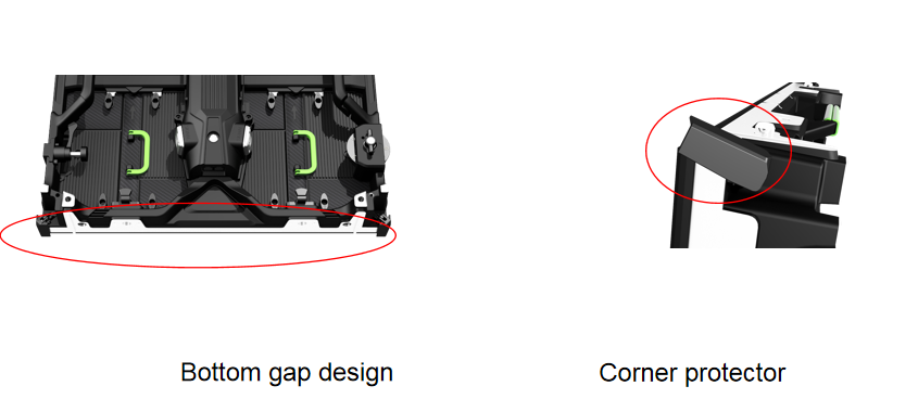 b.Bottom gap design of cabinet can effectively protect the bottom led and masks during transportation and installation